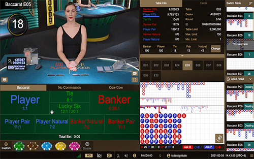 8 dek kartu permainan, 6 kartu diambil, 10 roadmap utama, multi-taruhan ... Ini hanyalah beberapa fitur hebat dari Live Baccarat kami. Speed Baccarat juga tersedia untuk pemain Anda. Kami juga menawarkan Side Bets seperti Lucky Six. Pembayaran maksimum dapat mencapai 20x! Semua meja Baccarat menawarkan versi No Commission dan Cow Cow. Ini membayar 1 ke 1 ketika Banker menang di No Commission Baccarat. Di Cow Cow Baccarat, peluang taruhan dapat mencapai 9:1!